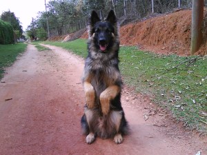 Comandos: aqui, senta, dá as patas, deita, rasteja, senta do deita, deita direto, fica e canil.