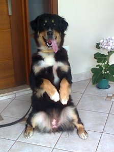 Comandos: canil, senta, dá as patas, deita, senta do deita, deita direto e fica.