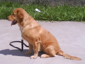 Comandos: aqui, junto, senta, dá as patas, deita, senta do deita, deita direto, morto, vivo e fica.